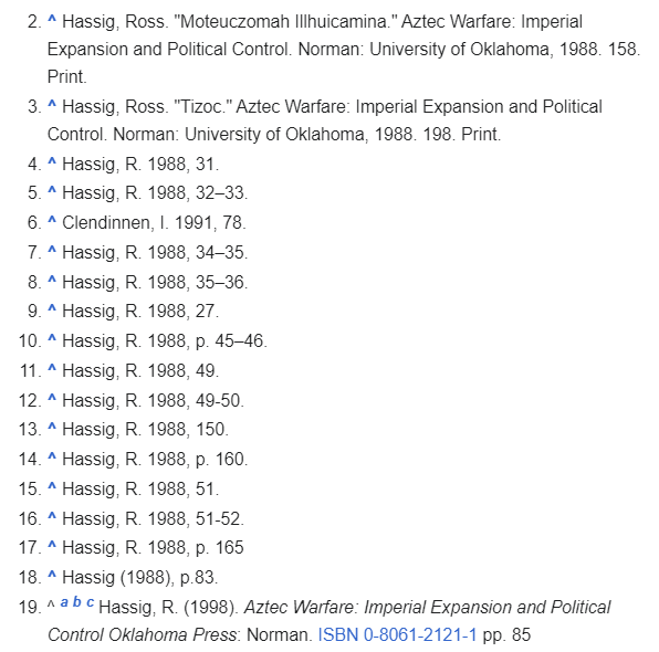 Hassig is very much of his time though, and the study of Mexica Warfare and the flower wars has developed since the late 80s in line with modern history and anthropology, so our next stop was the Estudios de Cultura Nahuatl for some more modern research and especially an article by Stan Declercq- "“They Were Always Fighting for no Reason”: The Aztec Flowery War as an Indigenous Social Construction" (2020).