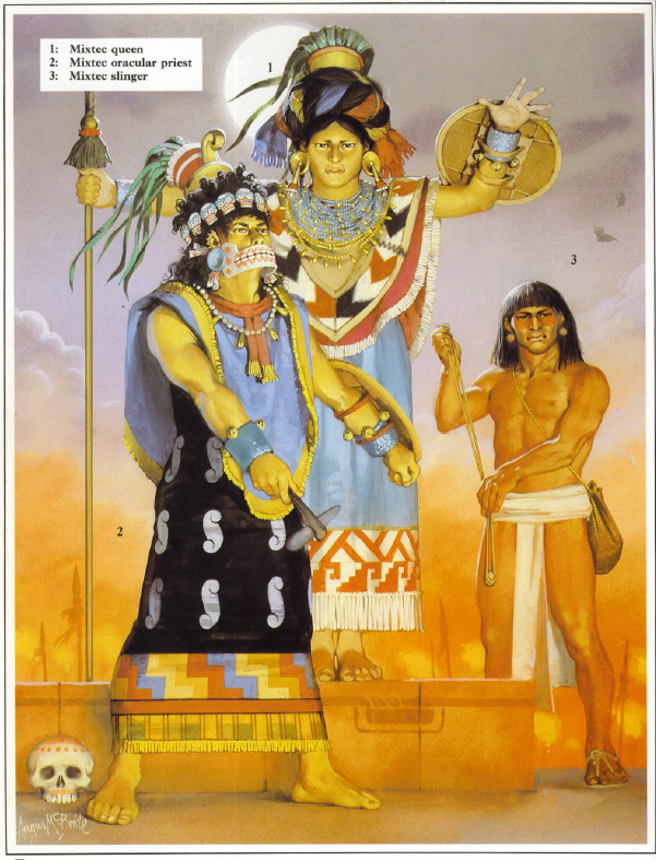 Chances are you imagined something along these lines. Mixtec, from Aztec, Mixtec and Zapotec Warrios. Credit: Osprey, Illustrated by Angus McBrideThat's what we're working with, more or less, isn't it? When something is so culturally loaded, my first stop is always to try and read, or listen to, the voices of the people I'm trying to research. This is hard with the Mexica largely due to the complete and total cultural annihilation the Spanish attempted, but Camilla Townsend's Fifth Sun provided the easiest and best access to Mexica sources I will ever get to have without learning Nahuatl or (and this one would probably be easier) Spanish. With Fifth Sun read I attempted to hold what the Mexica thought of themselves - a political hegemony held together with good luck, astute politics, clever diplomatic manoeuvring and a strong military - in the forefront of my thinking about the Flower Wars instead of what the Spanish portrayed them as - murderous savage cannibals who believed the white man was a god - so that I could keep Mexica voices and interpretations in my head as much as possible.