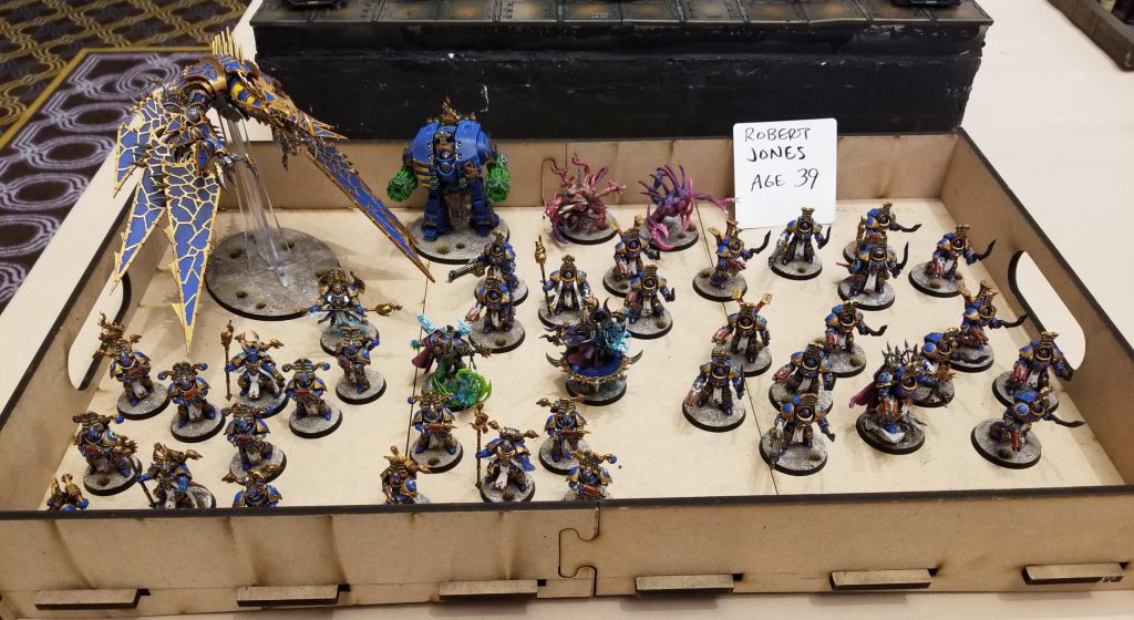Our resident painting and photography wiz kid is at the event, playing Black Templars with a real yellow feel. Jack's got an outside shot at best painted, but I also like his odds to go 4-4.