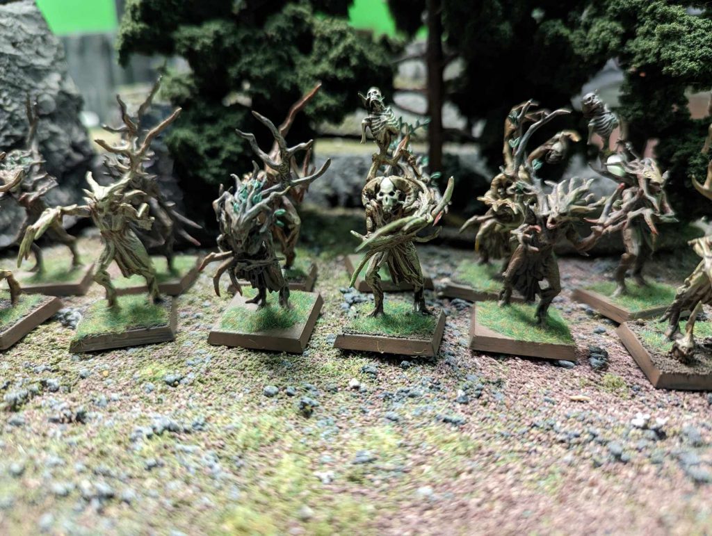 As far as other magic items go, the Wood Elf Realms boast several items that either only function if the wielder is inside a wood or are significantly improved if that is the case. Like the Banner of the Eternal Queen that grants +1 combat resolution to the wielder if they are inside a forest, or the Oaken Stave which for 40 points grants the user +3 inches on their dispel attempts, but if they are within a woodland feature they may also roll 3 dice when dispelling and drop the lowest.