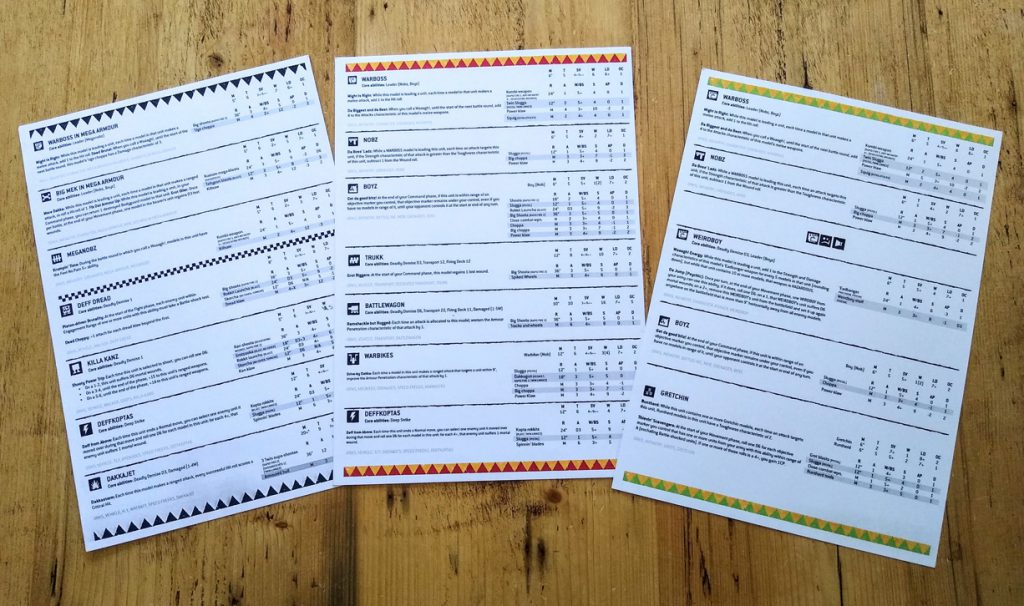 Ork summary cards. Credit: Charlie Brassley
