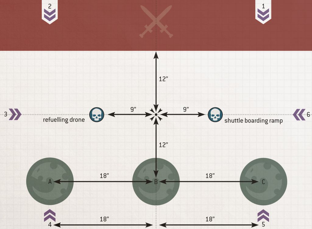 Deployment map for Fury of the Swarm Sporefall mission: Big Guns Mustn't Tire. Credit: Charlie Brassley