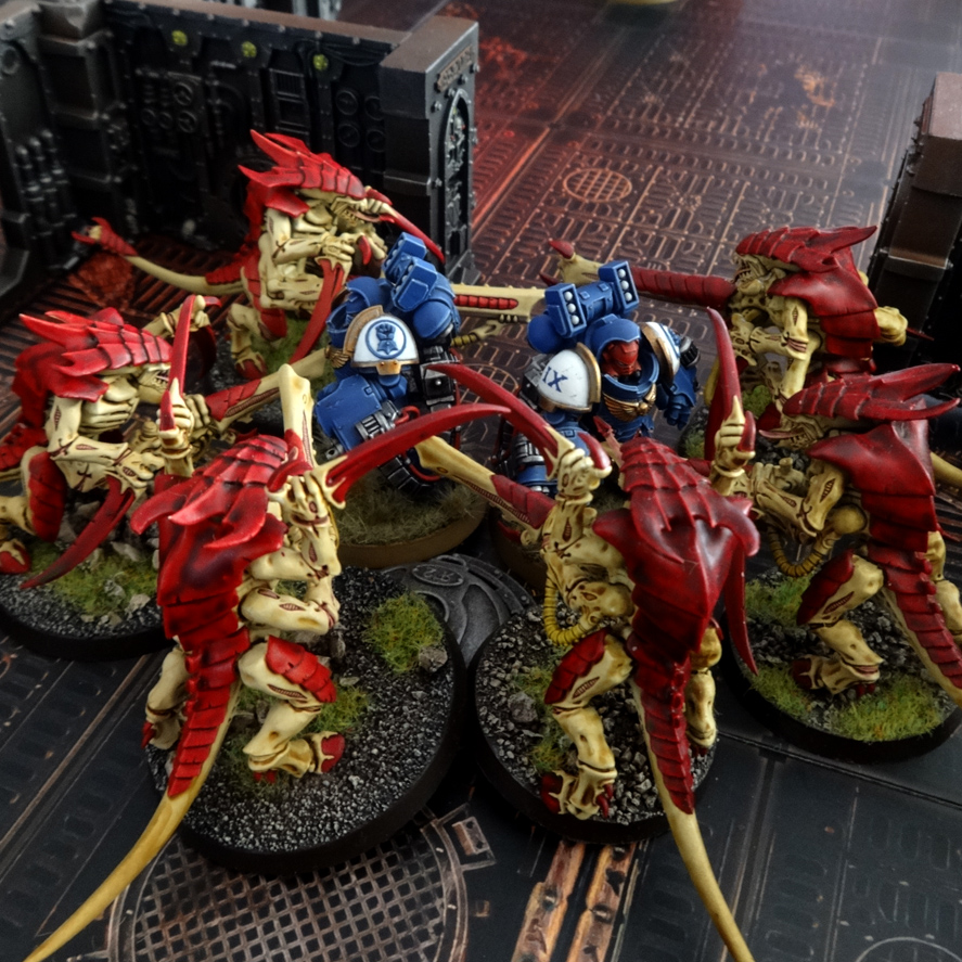Cobalt Scions Aggressors make their stand against Tyranid Warriors. Credit: Charlie Brassley