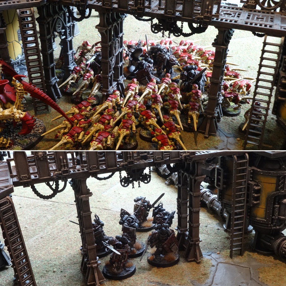 What have we learned so far? Honestly my biggest take home from all the tests so far is that FotS facilitates a very different kind of cinematic moment than traditional player-versus-player 40K. Automated Tyranids are easier to fool than a human opponent, but more numerous, making you feel like a big damn hero, and able to showcase 40K units behaving just like they do in the lore. Heavily armoured troops in forward positions can absorb damage for their smaller mates. Skirmishers can kite Tyranids away from the main fight, freeing up objectives.
