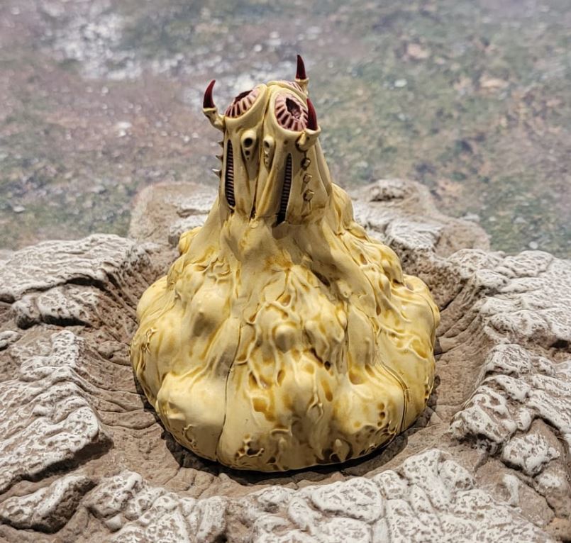 Just as Living Rain is the archetypal Sporefall mission, Burn the Nest is exactly what it sounds like for the other end of a campaign. It's also an opportunity to do some Tyranid terrain (not a mandatory one, mind: you can just use normal objective markers if desired). Noted Fury of the Swarm enabler Tom kindly acquired and painted the Tyrannocyte/Sporocyst kit, then threw the resulting spare components at me to be converted into what we now refer to a tactical flesh lump.