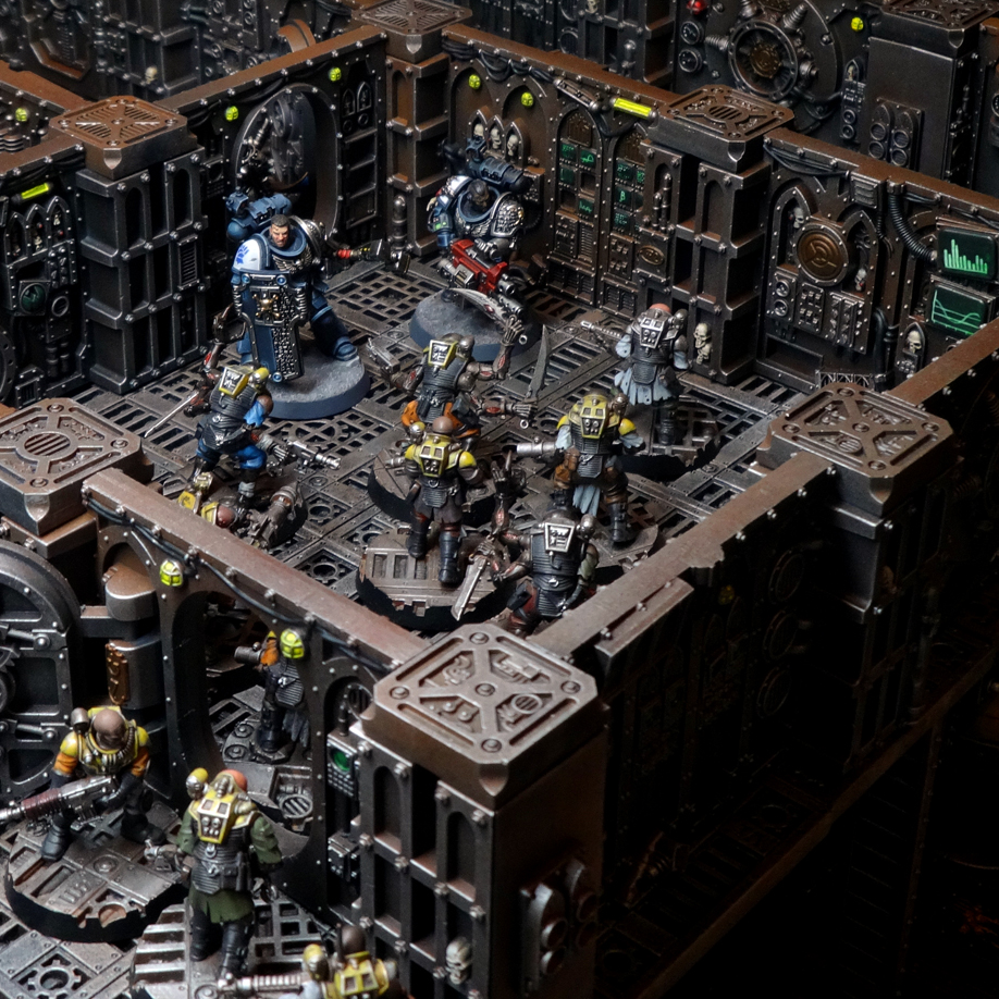 Genestealer cultists defend their space hulk from the Deathwatch. Note: I'm not currently planning to include GSC content in V1, this is just because the basing made for a better photo. Credit: Charlie Brassley