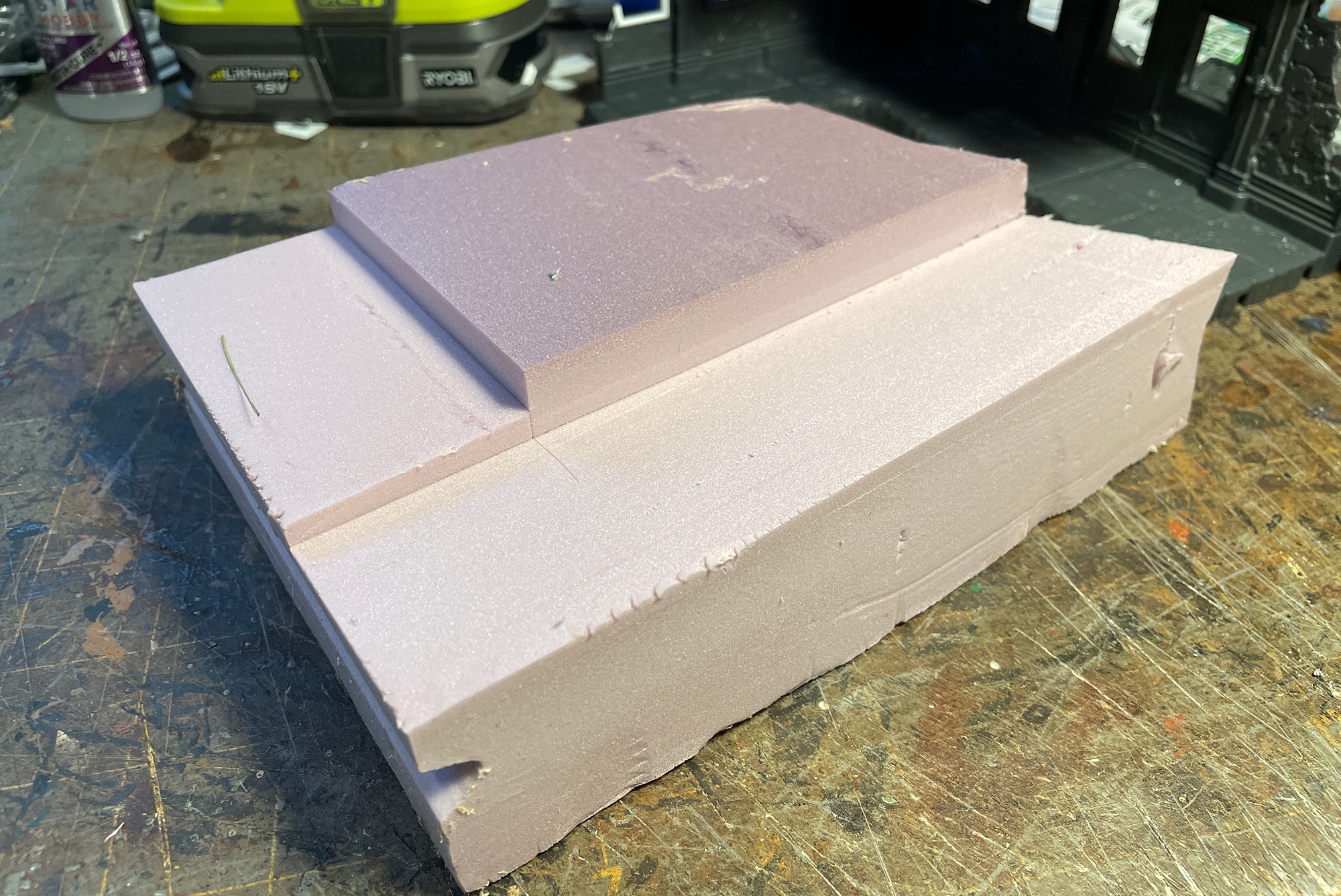 Credit: DylanOnce that was all set and glued together I grabbed some two-inch insulation board and cut it down to the rough size I needed with a box cutter. Insulation board is readily available from any home improvement store or, if that's not convenient, you can easily order small sheets of it online. It's a versatile hobby supply that, the more you work with terrain, the more you appreciate.