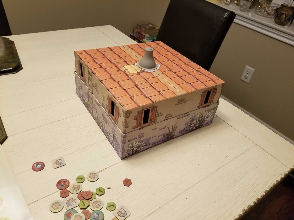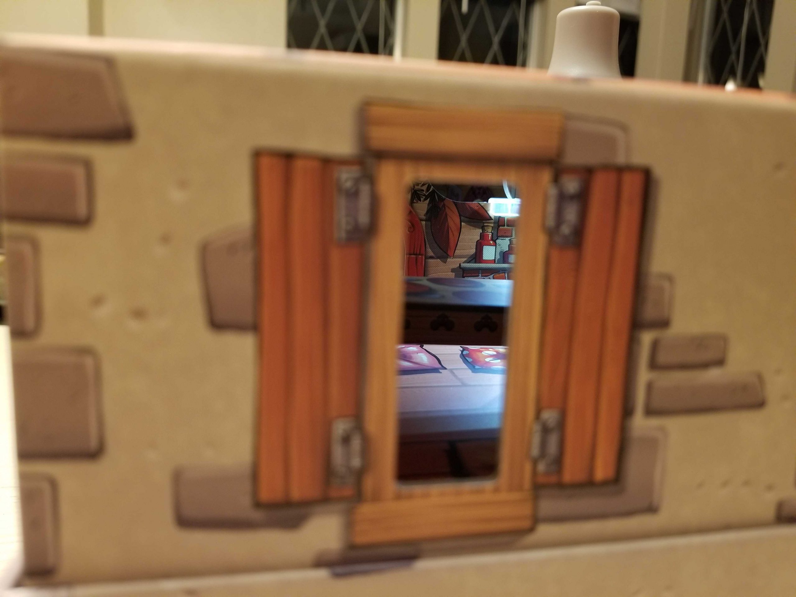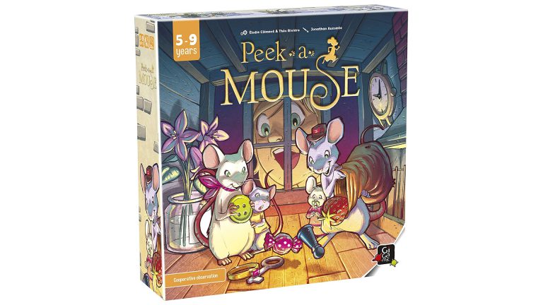 The Peek-a-Mouse box turns into the playing "board"Peek-a-Mouse is a memory game that's equal parts memorization, detective work, and voyeurism simulator. The box itself becomes the board, containing a miniature home for the game's titular mice, who have "borrowed" a variety of household items from your house. Each round, players drop a series of item tokens into the box, which is split into four rooms - kitchen, bedroom, bathroom, and study - and then turn on the light that slots into the top of the box.