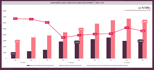 Asmodee is the most distinct of the three businesses being split off and the only one with a name. It likely has, or can get, back people to run the internal systems much easier then a group of studios that relied on “corporate” for HR, legal, accounting, and other services. I predict that once Asmodee is its own public company they will work to get longer term financing through a combination of longer term bank debt and a public markets bond offering. The loan they’ve taken on is likely structured as a bridge loan with low required debt payments that encourages them to seek take-out financing. As you can see below, board game side has extremely low investment needs compared to the game companies.