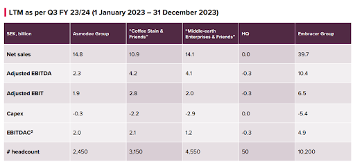 BPhillipYork: Big picture, I think they grew too much and too fast and now they're struggling with cash flows to pay down debt. The currently expected interest rate on the group’s total debt, based on a floating rate, is around 6.15%. The amendment agreements include scheduled quarterly minimum prepayments, that amount to SEK 2.6 billion on an accumulated basis up until January 2025, starting in Q1 FY 24/25. So, I think, big picture, this makes sense, business wise, but it's also being done to make the "equity story" clearer to investors in a hope to probably issue more shares to pay down debt, because I think they took on too much debt over the last 3 years, didn't grow enough, then tried to work out a merger or sale of some sort, and the other party walked away after a handshake deal. I don't think any of the groups will go bankrupt or anything like that; it's possible they are putting toxic assets into one group and are then going to burn it down, but that's pretty cynical. I do think this is about debt though.