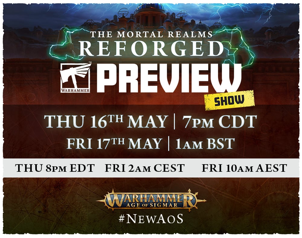 Credit: Games WorkshopGames Workshop announced Monday that there will be two preview shows at the Dallas Open next week, as a part of the larger Mortal Realms Reforged event.