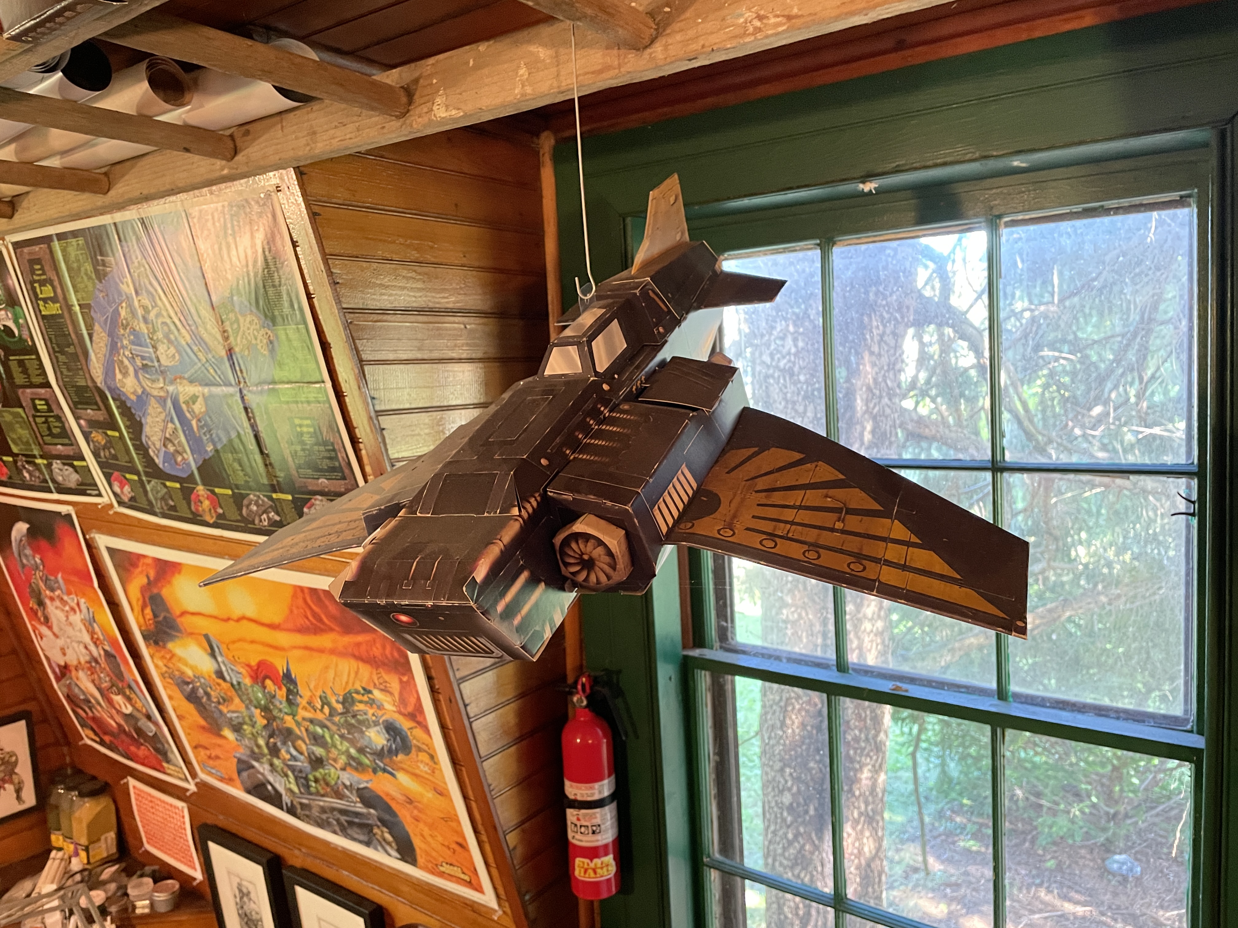 We moved last year and part of the new property included a semi-detached barn, that had its upstairs finished in the 1920s. Varnished beadboard as far as the eye can see and TALL ceilings. I was bequeathed two rooms from the house; one became the hobby room and the other became the game room.