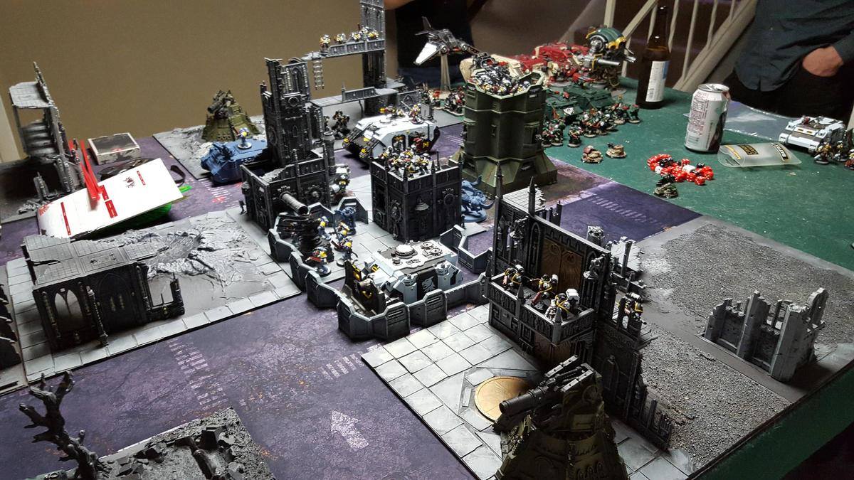Another day of slamming hams completeThe biggest challenge with something like this is that, while space wasn't really the issue - my parents' house had lots of space to store things - 40k takes up a lot of space and we're a sloppy group. So it was just as important that, after each game, we make sure to go through and appropriately clean up after ourselves, packing up all the terrain, disassembling ad stowing the table and tiles, doing the dishes, hauling out the trash, and so on. This is one of the key things when you're working in a space that's not your own, in my opinion - whether it's a hobby store, a friend's place, or your parents' house, make sure you clean up after yourself and leave the place in the same condition you found it. That goodwill that initially invites you to use the space is going to evaporate real quick if you leave lots of extra work for your hosts every time you have a game.