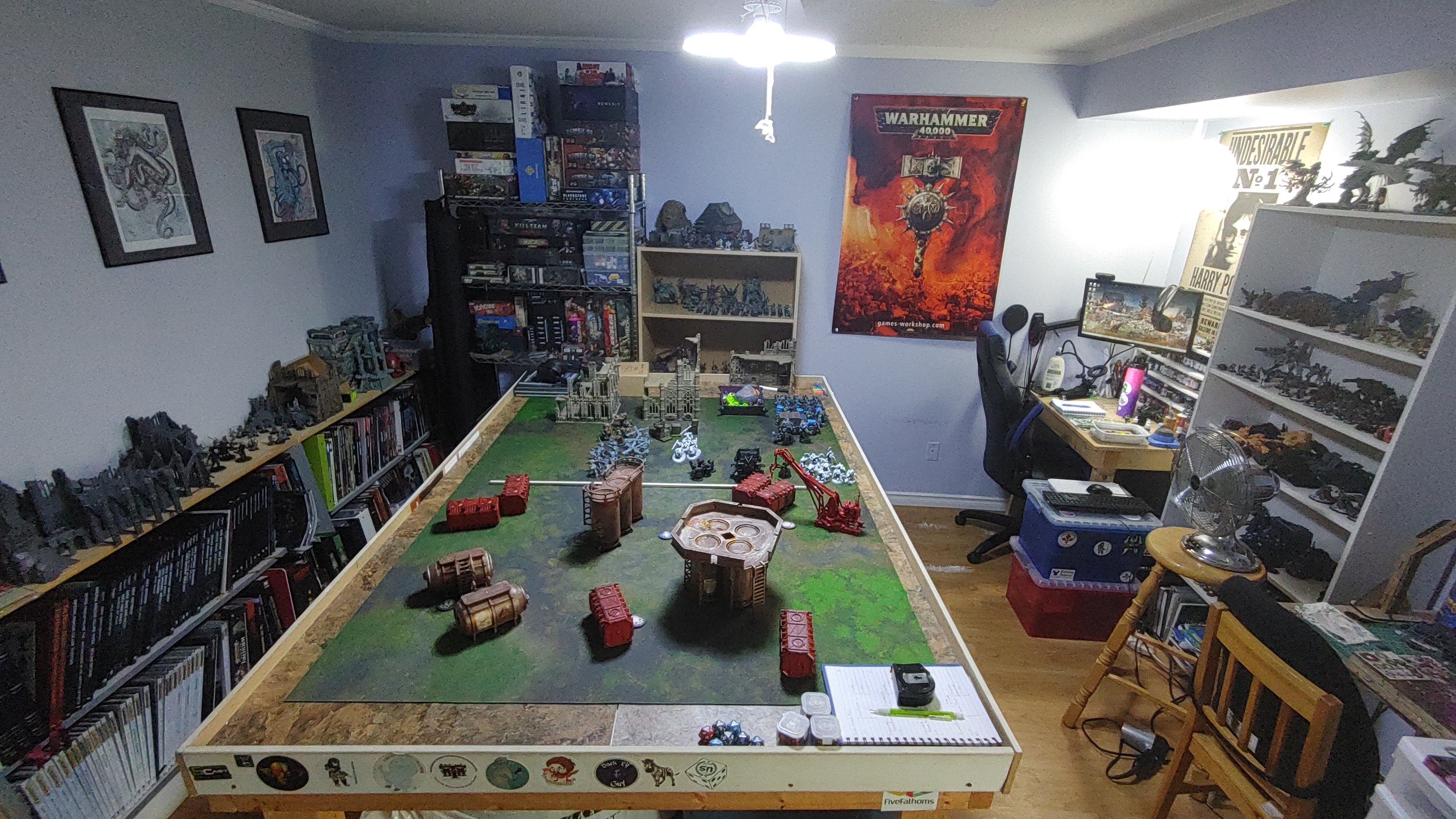 And that is it! A cheap and cheerful, ugly but functional, game room. She might not be much to look at, but many a game night has gone down at the table here. I like to think that this room is one of the local gaming hubs and I love that it is mine.