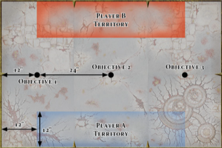 The number of locations the objectives can land has been simplified back to 3 locations in each territory which makes the chances of it landing on the other side from your army much lower.