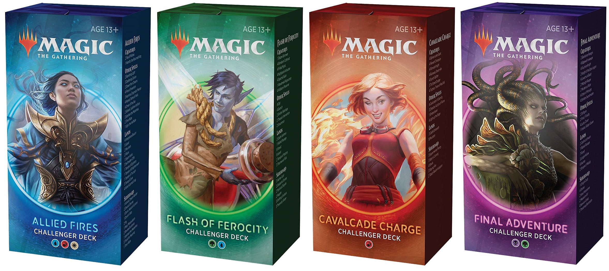 Challenger decks are sixty-card decks that come with a fifteen-card sideboard. These decks are made to help players get a foothold into tournament Magic and are excellent things to have for your first Friday Night Magic. The cards selected for challenger decks are chosen with tournament play in mind. None of them will contain all of the pieces for a top tier deck, but you should expect to get a foundation of a tournament-caliber deck for Standard. These decks can be found at your local game store and at big box retailers. The secondhand value of the singles in challenger decks is usually higher than the retail price of the deck, which makes them an excellent deal even for established players. Challenger decks with highly sought after cards can sometimes be difficult to find because they’ve been bought out and are usually priced higher because of their desirability.