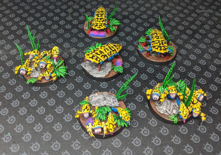 Troop: 5x Tyranid Warrior (5x Boneswords, 4x Deathspitter, 1x Venom Cannon, Adaptive Physiology: Enhanced Resistance) Troop: 10x Termagant Troop: 10x Termagant Troop: 10x Termagant Troop: 10x Termagant Troop: 3x Ripper Swarm