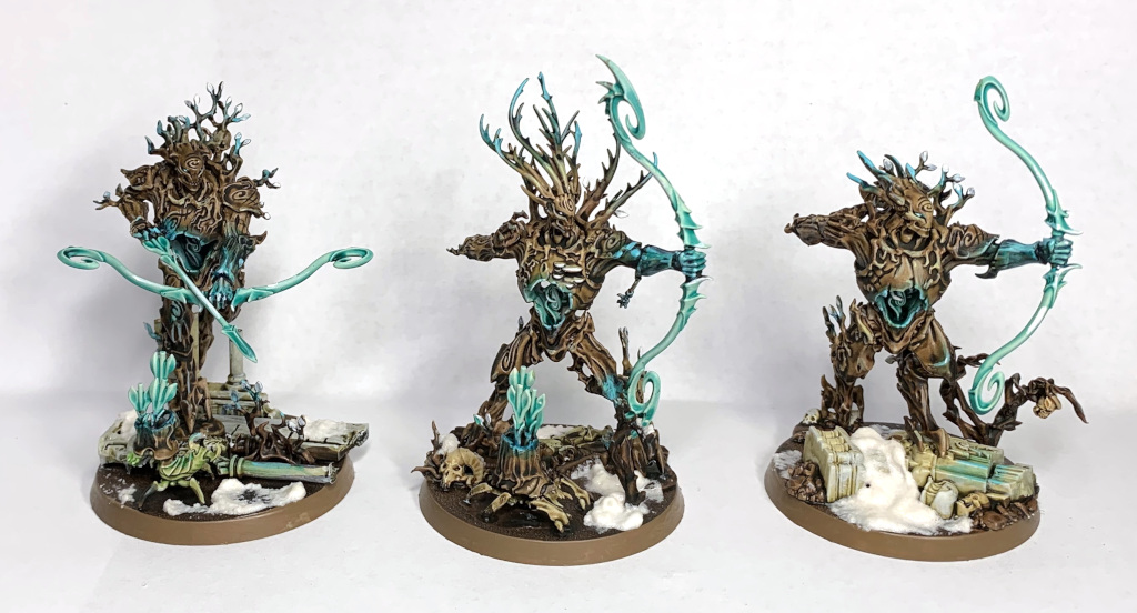 Dryads and other sort of tree folk. While fragile, Sylvaneth have a lot of solid shooting and teleportation abilities to keep your opponent guessing. The models are gorgeous and accommodating to a lot of very colorful painting schemes.