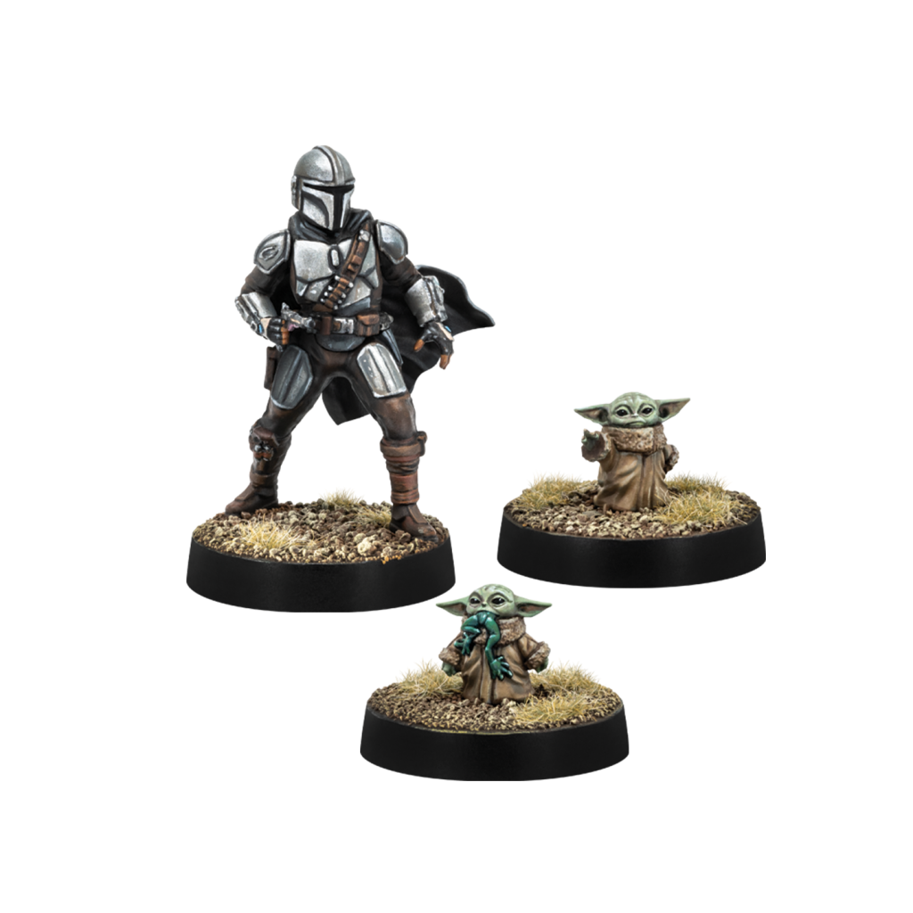 - Din Djarin: His card says he is 105 points, but really he’s 122. Because why wouldn’t you take Grogu along with The Mandalorian? In addition to the normal upgrades, he also has access to his Beskar Spear to gain TWO red dice and a black dice in melee combat. It also can either grant Din Pierce or Immune: Pierce if he spends an aim or dodge token, respectively. His range is much closer than Rebels typically like to be, but he is very effective when he gets up close and personal.