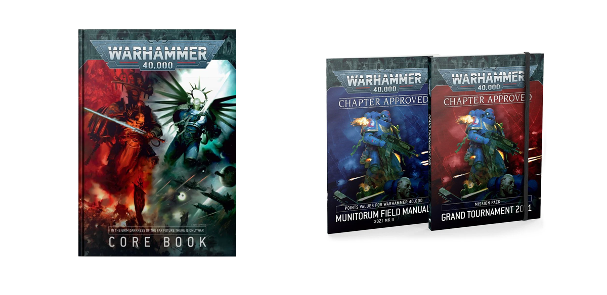 The first thing you’re going to need is the Core Rules. These tell you everything you need to know about how to move, shoot, fight, and everything else you’ll need. You should take the time to carefully read these rules and become familiar with them. It’s not a lot of material, but a good understanding of them will make you a better and speedier player, as well as making it more fun for other players to play against you. You can find them for free on the Games Workshop website, or in the Warhammer 40,000 Rulebook if you’ve already bought it. While you’re going to want the full rulebook eventually, you don’t 100% need it for your first game - though you will definitely want it as soon as you step out of the "push models around to figure out how the guns work" phase, so pick it up as soon as you can. Strictly it's less necessary than before because most of the rules also appear in the Chapter Approved books, but there is one vital section that appears nowhere else, which is the army construction rules - so you will at least need to get a look at those in the big book.