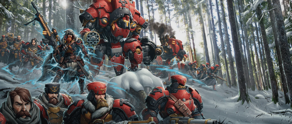 Very much based on Russia during the First World War, with a little bit of “what if the Tsars made it to World War II” mixed in for good measure. Lots of infantry, mixed with warjacks that have the subtle design sensibility of a bulldozer. Some of the new, larger warjacks are even tracked, making them more tank-like than the walking jacks.Playstyle