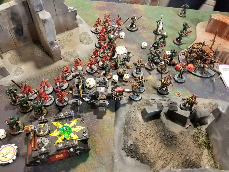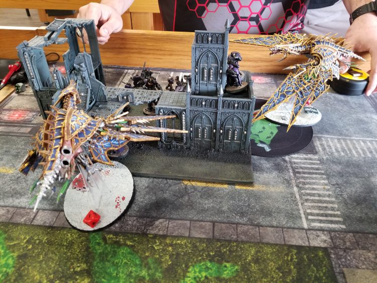 This is when things went bad for GregThe game itself was decent; Greg put up a better fight than he had in our practice games, and I think he'd started to get a handle on the army. Thanks to a Discord note that suggested people who did not stop by our game may have had low-quality dicks, we quickly amassed an audience and since it was the end of day one, it made our table a good place for Goonhammer peeps to stop by and plan for the evening. And so after a stressful and somewhat disappointing day one, being able to just relax and have a whatever game with someone I've known for twenty years was an absolute delight. NOVA 2019 wasn't going poorly or anything up to that point, but that was a game I needed.