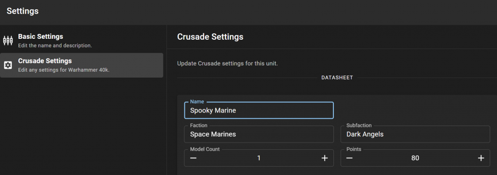 We've added support to pick subfactions for units, so you can specify things now like which Chapter, Legion, or Clan your unit belongs to and edit these later. This was a Patron request to clear up some lingering weird issues in the changeover from 9th to 10th edition.