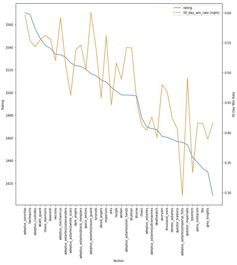 - We've got a new way of visualising our data behind the scenes that helps us decide on marginal cases. You may have seen the various ratings Dexefiend has been putting together for our meta reviews - these are tremendously helpful as they let us see trends in faction performance over time - and this time around in particular a few armies have swung hard either up or down in the last 30 days.