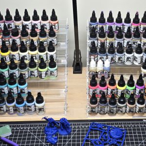 Jake: If someone has been around in this hobby for even a short amount of time, they’re going to have more paints than they know what to do with. They’re also likely to have them piled up in shoeboxes or chaotic piles on the painting desk. I tried a few different solutions over the years, but the one I’ve been happiest with also wound up being the cheapest – clear acrylic nailpolish racks. There are dozens of listing on Amazon, but this is the model I purchased ($13 USD). They’re particularly good for the fatter bottles of paint, like what Citadel or Pro Acryl use but you can also stagger the smaller dropper bottle style paints to fit quite a few in each row.