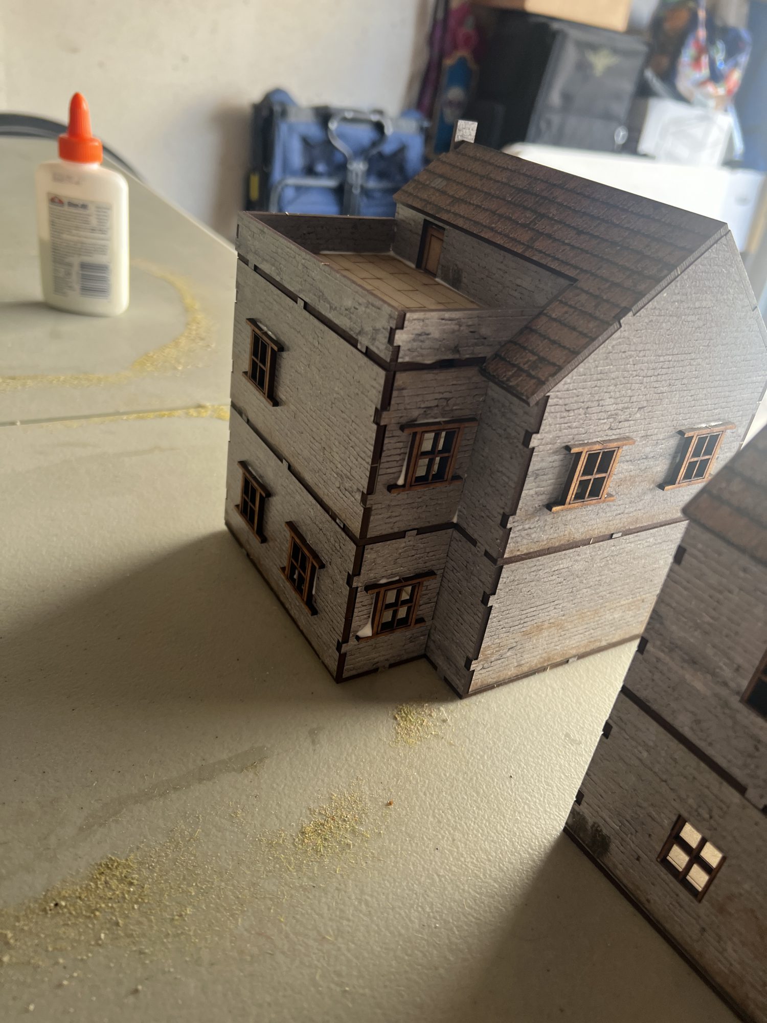 It proved to be quite involved to assemble the kits. With no instructions provided, I had to resort to using trial and error to assemble everything. Assembly wasn't necessarily that complicated; it's just that without a guide, it proved a bit more trying than it should have been. Dry fitting was essential. Basically, what I did was pull out two 2’ x 4’ folding tables and laid out all 3 buildings as they lay on the sprues, then assembled them one at a time.