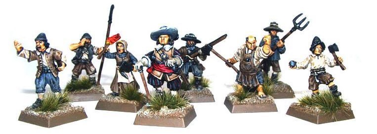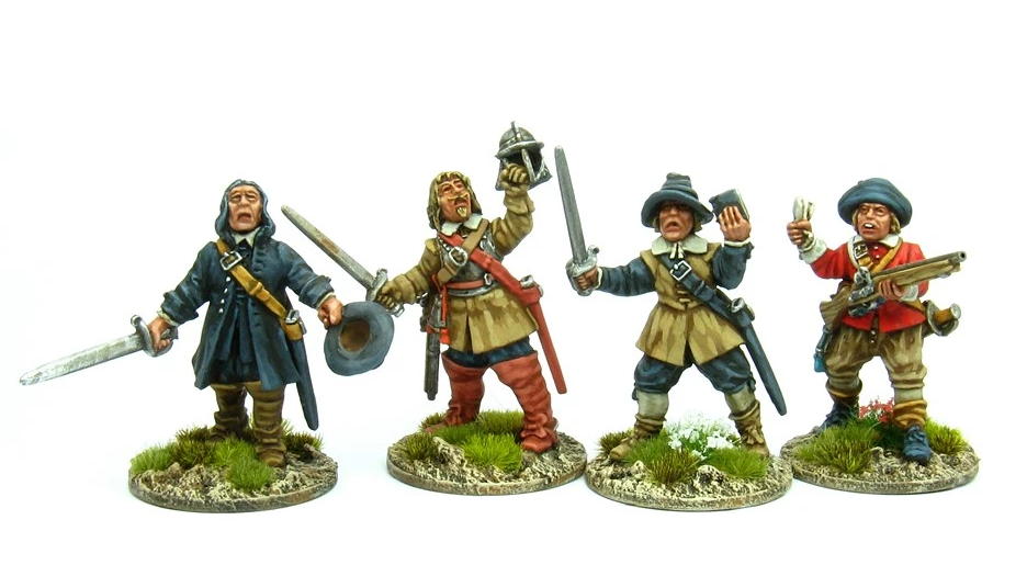 The Warlord Games Band of Clubmen is a promising start, with a variety of weapons, and a definitively less regimented look than most figures who find themselves in actual, organized units. The Wargames Atlantic Conquistadors kit (available using our affiliate link), similarly, is a handy source for roughly period appropriate armed men with a variety of weapons, though this will give your hunters a decidedly martial bent.