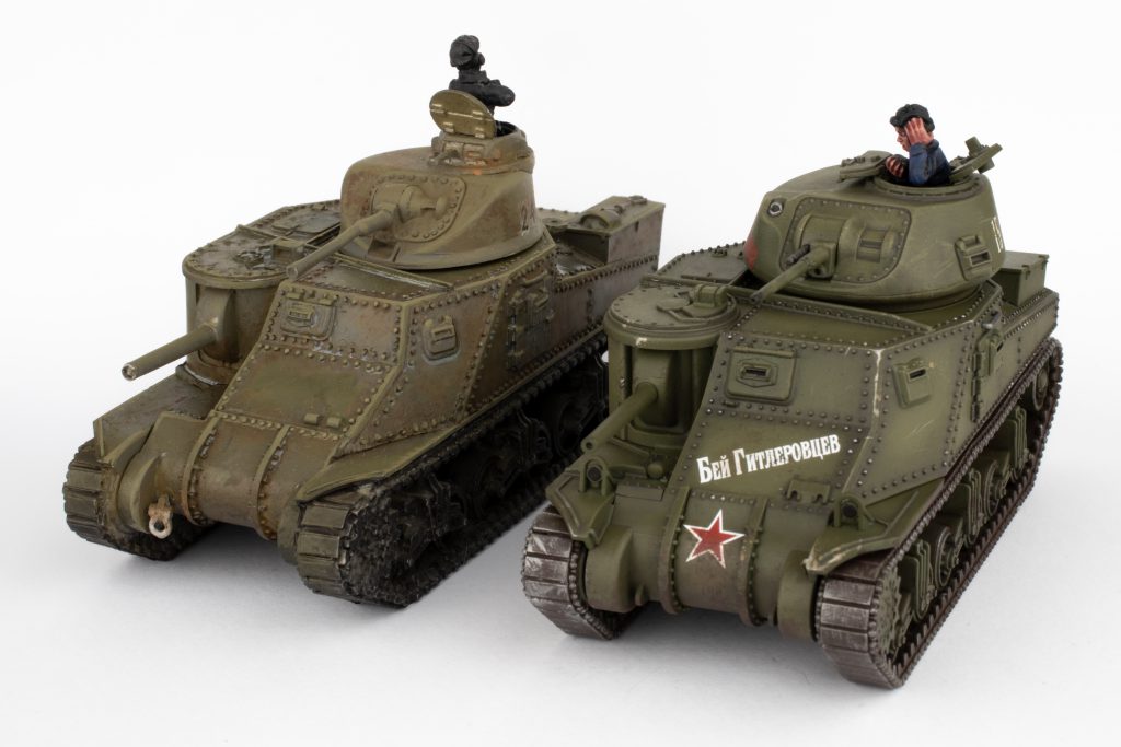 Plastic and Resin Soviet Tanks. Resin M3 on the left, new plastic M3 on the right. Credit: MommaNegan