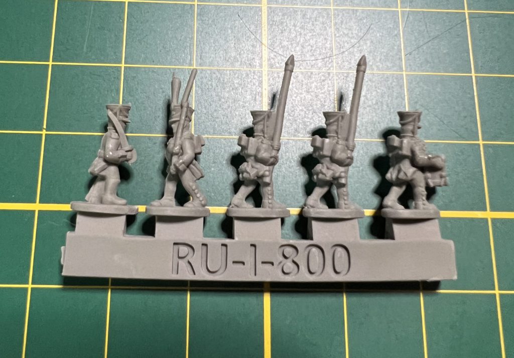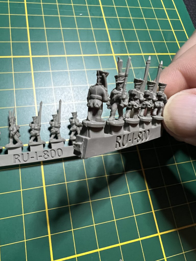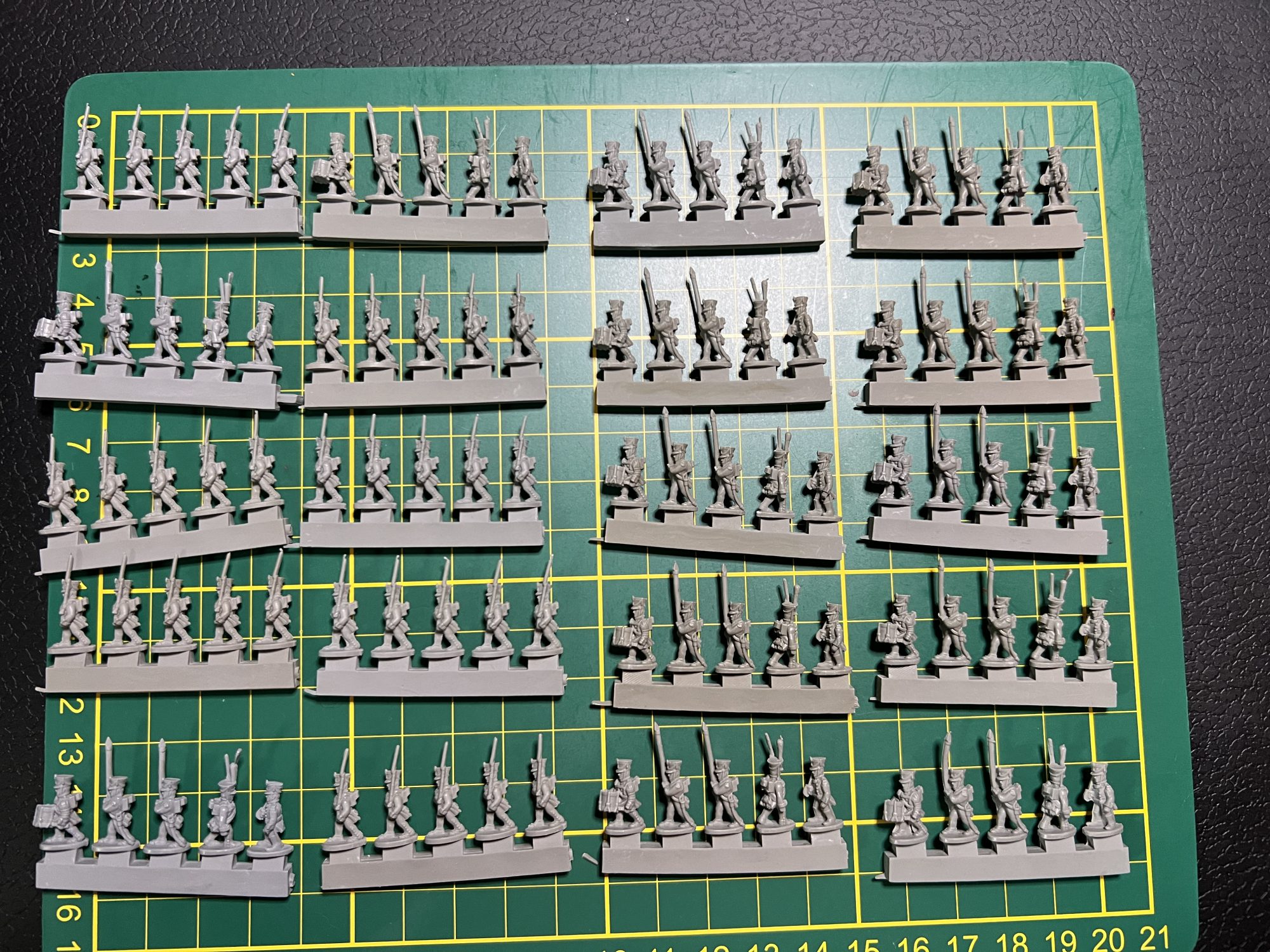 Some of the line infantry that come in the boxI know that traditionally Napoleonics at smaller scales are done in metals, whereas this is the first line of 10mm plastics. I was a little worried when first cracking open the kit that the models wouldn’t have a lot of detail (not that it particularly matters at 10mm), but I think the decision to use soft plastic doesn't come at the expense of detail. In fact, the level of detail on these miniatures is nothing short of exceptional. The intricate uniforms, weaponry, and facial features are all meticulously sculpted, ensuring that each figure exudes historical authenticity. Quite frankly, I was a little amazed at how much character and historical accuracy these 10mm figures manage to convey.