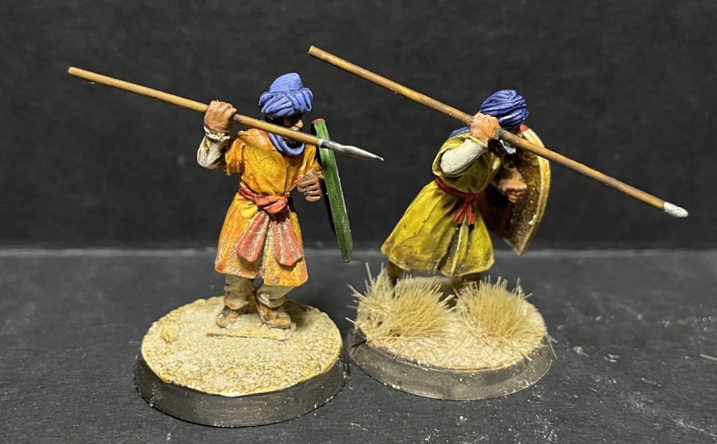 Personally I’m a fan of metal models in my historicals, so the usual downsides of metals (single pose minis, etc) don’t really count for me when I’m looking at a metal range. However, there is one key issue with some of the models - particularly on the Islamic side of things - that does come down to making them out of metal: spear hands. Hands holding spears in the Outremer range, whether mounted or foot, require drilling out the hands in order to mount separate spears. That’s not such a big issue - a sharp drill bit and some patience and you’re sorted. I messed up a few of mine, drilling through the side of the hands - because I had neither. Unfortunately what does become an issue is the spears provided with the models. As mentioned above, these are on the slightly softer end of metal casts, and the realistically thin spears suffer for it. Even carefully packed in their plastic bags and cushioned well in the delivery, every single supplied spear arrived with me significantly bent if not broken. I attempted to straighten several out, and broke more in the process. I wish they’d been supplied with brass rod instead, and you can see the slightly odd results of me using what I had lying around to fix the problem below: