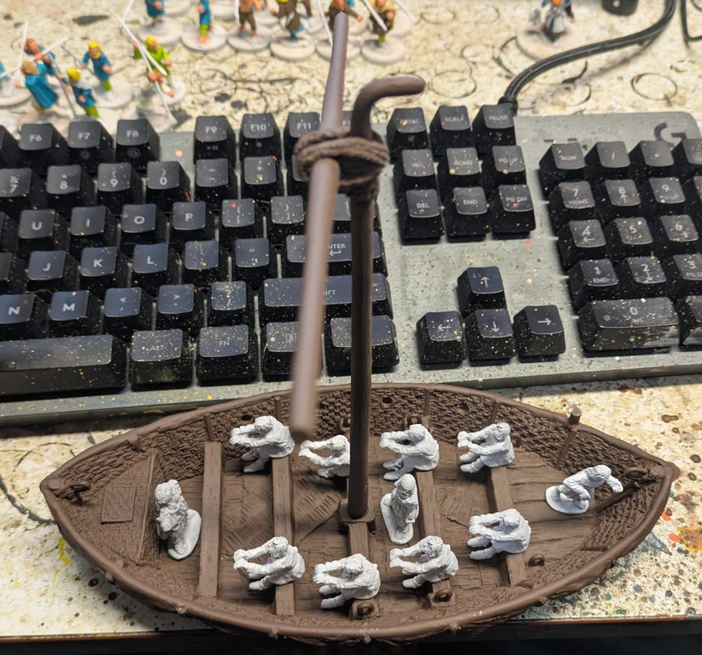 The boat I chose is an Irish vessel and has tons of sweet rowers with oars and a tiller. I bought a 3D printed norse longship for my son and a small merchant vessel for my daughter. If she wants a longship too I'm sure one could be procured quickly!