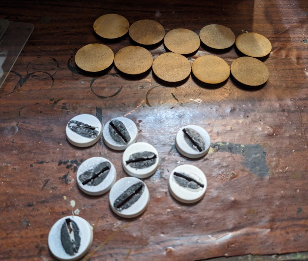 An assortment of 20mm and 25mm bases. My 20mm bases have paint and glue marks because they've been repurposed from other minis. Credit: Michael O "mugginns"I've also included in the order 25mm plastic bases from Renedra. 25mm is fairly standard in terms of basing Napoleonic troops, but there is no hard and fast rule as to how you should do it. You can base them on squares if you like. I choose to do 20mm as I like how they rank up when I put them in a movement tray for games of Sharp Practice. You can choose plastic, MDF (wood, basically), or even 3D print your bases. For monsters it's really up to you how you want to base them - I'd suggest grabbing a bunch of 25mm bases, 40mm bases, and some 60mm.