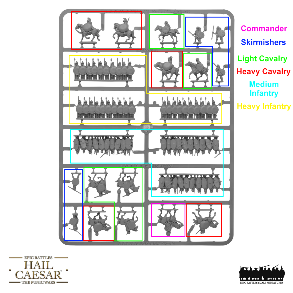 Hail Caesar Epic Battles: The Punic Wars is Warlord Games's newest entry into their ever-expanding range of epic scale wargames. Set in antiquity and taking on the name of its 28mm cousin 'Hail Caesar' the first wave of models and rules focuses on the Punic Wars. Though looking at the dramatis personae, the focus is more on the second Punic War specifically. Hannibal Barca and Scipio Africanus being the two big commanders alongside their closest allies and generals facing off one another.