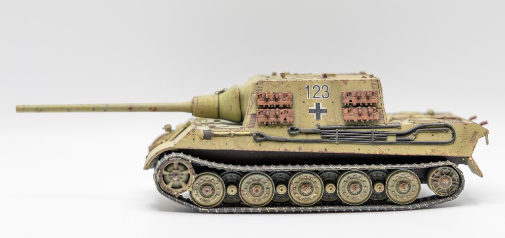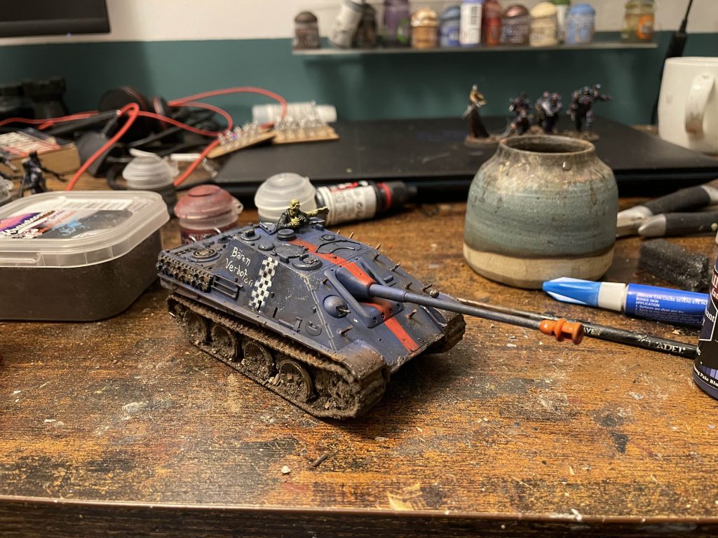 This was a fun kit to build - even though I got it by accident. I thought I was buying a Jagdpanther, but apparently I cannot read. In any case, it was fun to paint up and add a little chipping to it. I got to use this guy in a game of Achtung Panzer! This year against Class Warcraft. This thing is a brute - 22 front armor! I still may go back and add some weathering to the treads, which you’ll see below I’ve been experimenting with this year.