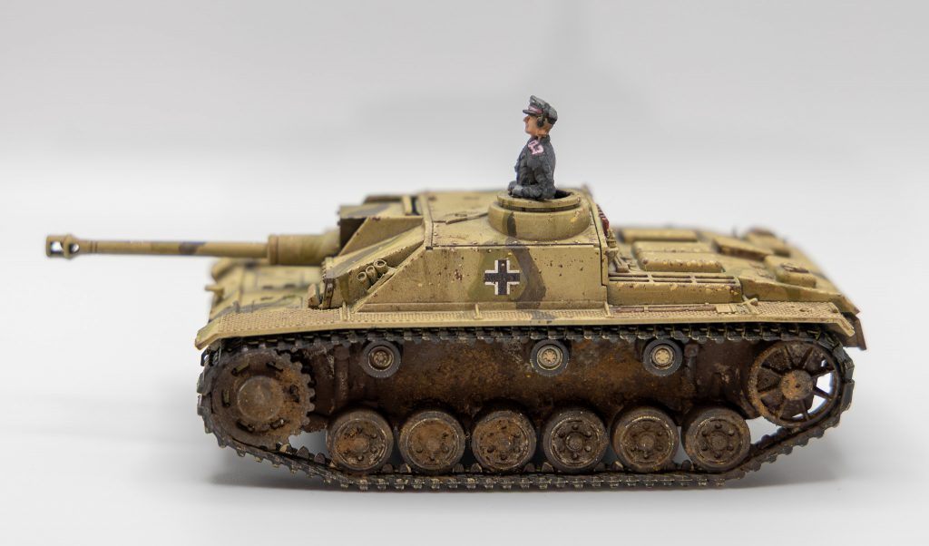 Hell yeah. Of all the Second World War tanks, I don’t think I like any of them better than I do the STuG. This was a really fun build this year, because I got to try 3 new things. First, the commander - I actually tried to create a historical representation of the piping on his shoulders. I know I probably got this wrong, so please do not count the buttons too closely, but I enjoyed doing it and I think it looks great. Secondly, this was really the first time I’ve tried playing around with weathering pigments for the tracks and lower hull. I started by stippling on AK Interactive’s Wet Ground, then used a few different weathering pigments. There was a style="font-weight: 400;">really great video I watched on how to actually use weathering pigments, so it was fun to take a crack at. Lastly, the top piece of this kit comes off and is magnetized underneath. I have a bunch of Fallschirmjäger tank riders that I magnetized to go on top of this.