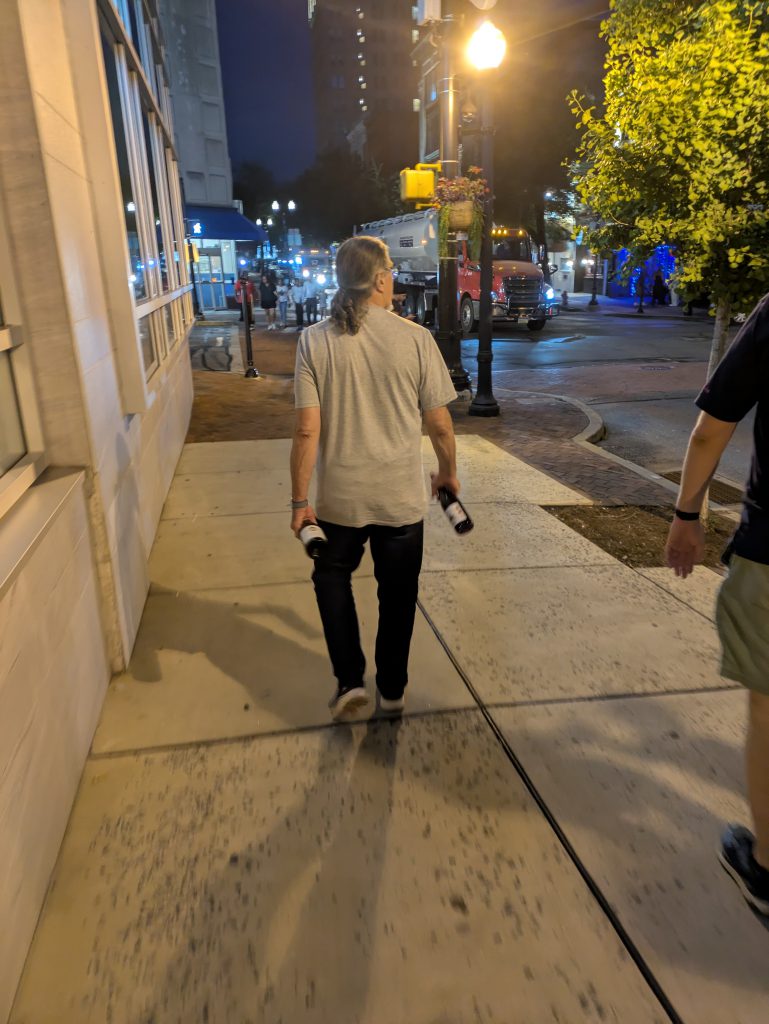 Our fearless leader, the Lard Uncle himself, Patrick, walks the mean streets of Lancaster double fisting bottles. Credit: MugginnsThere are a TON of food options around the convention center. I think I noticed three different Nepalese restaurants, with our group eating at one Friday night - it was excellent! An appetizer and Bhutawa Chicken entree only cost me $20 (in this economy!). I'm also apparently a massive Midwestern rube because I didn't know you could BYOB to restaurants - our buddy Patrick brought in an entire case of champagne and handed it out. I internet searched it, and apparently its just not as popular here in Michigan because liquor licenses are much easier to get than some places. Other food options are the Central Market, with tons of great breakfast and lunch options and plenty of breweries. Folks with a far more refined palate than mine visit HistoriCon and love the food there.