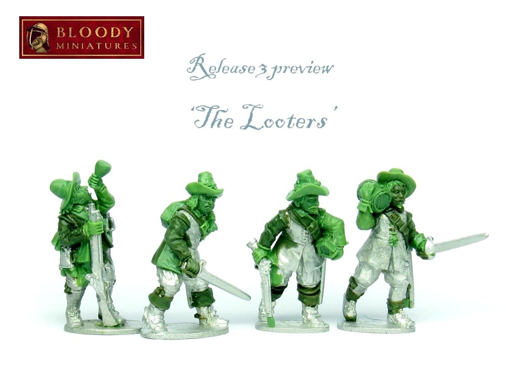 Yes, I set out to complement the excellent and extensive 28mm ECW ranges produced by Bicorne Miniatures and Renegade Miniatures (the latter now sadly defunct), with a new range of character figures in the same style and stature, and sculpted by the same guy (Nick Collier). I managed to make contact with Nick, who thankfully was entirely up for it, and so Bloody Miniatures was born. The mission was to create a new range of figures portraying the sort of characters never seen in ‘traditional’ ECW ranges. It wasn’t too difficult to identify the gaps. If you think about all the situations and types of fighting that occurred in warfare of the period, you soon realise that marching pikemen, firing lines of musketeers, and cavalry troopers in parade ground poses don’t adequately represent much of what must have gone on day-to-day in the English Civil War, or other conflicts of that era. So instead of thinking in terms of troop types, I just started thinking about all the different sorts of fighting and the desperate situations soldiers of that time would have found themselves in. It quickly leads you to a need for more interesting, scenario-based sets of figures. Like dismounted cavalry troopers engaged in house to house fighting; a storming party attempting to force a town gate; or foraging troops skirmishing along hedgerows or village lanes, vying to secure a barn full of grain.