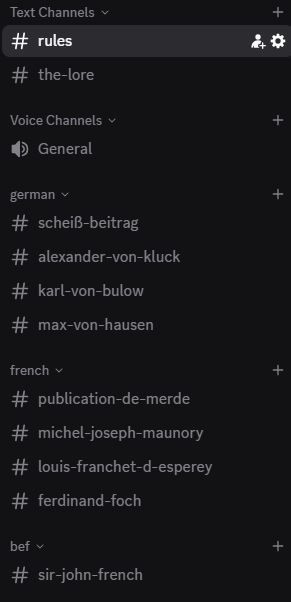 How I laid out a simple discord server.The International Kriegsspiel Society play over discord and TTS. But they seem to play live games, and I wanted something that didn’t require everyone to be in the room at the same time. Discord is fine enough for managing the teams. I had a general chat channel for pinging everyone, a channel where I included additional background material around the battle, and then channels for each team. Discord roles let you section players off from each other to prevent any temptation. For the map I went with Roll20 and it worked surprisingly well, but took a bit of effort to set up. I grabbed the map off of Old Maps Online which is a very handy resource for this kinda thing, though you could very easily screen grab a modern map for free. In Roll20 I set up a main map for myself and then a copy of it for each player. As each player joined the game I moved them to their own map page for the entirety of the game and it was up to them to fill it in (or not) as the game progressed. Divisional symbols are super easy to use as tokens, and Roll20’s grid let me scale their movement to the grid rather than faffing around with highly specific movement rates.
