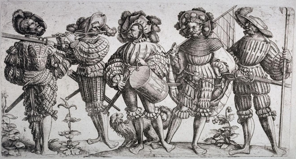 For a wargamer all this grief is actually good news, since mercenaries will work for anyone, and you don’t even have to change up banners in some cases. The second thing you’ll want to know is how to paint these guys of course. The good news is that we’re looking at a period 500 years in the past, so we’ve got some leeway in that regard. Also: Landsknechts are famous for being flamboyant, and on special dispensation from Maximilian, were allowed to wear whatever they wanted, since they were almost certainly doomed for a short, hard life as mercenaries. Nuance not being one of the strongpoints of these guys, they went all-out. Uniformity is actually discouraged, as most Landsknechts would spend their money on drink, women and fancy clothes. This gives you an exciting opportunity to step out of the grim darkness or boring shades of green and into a multi-colored festival only experienced when tripping on acid in a clown factory. We’re talking cod pieces here, which are actually fairly understated on the Warlord games models. As a side note, the clothing was also a bit of gatekeeping to keep out the poors. Most of the men drawn to the regiments were what could be described as middle class today. A certain budget was needed to get started with your arms and equipment, as every landsknecht had to buy these themselves. Society at the time did experience a population explosion, and there were plenty of young men who couldn’t get started in a guild or as an apprentice as a result.