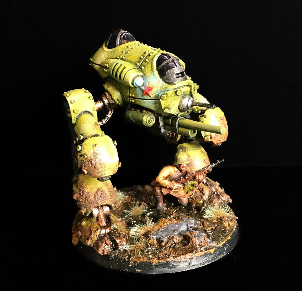 Konflikt 47 light Mech. Credit: LenoonWhen I got this I was slightly dreading the build from a history of bad experiences of metal and resin hybrid minis, but it turned out alright. The resin used for these is pretty easy to superglue, and the ball joints into the legs popped in snugly, so it was just a matter of balancing the pose and keeping it still until the superglue cured. It was a really fun model to paint, and as you can see I weathered the shit out of it and daubed it in a ton of water effects mixed with brown washes to create hideous, liquid mud. I enjoyed it enough that it moved my whole Soviet platoon back up out of the paint queue - I might not get to them immediately, but they (and one day the much bigger brother, the Mastodon Heavy Walker) are very much back on my radar.