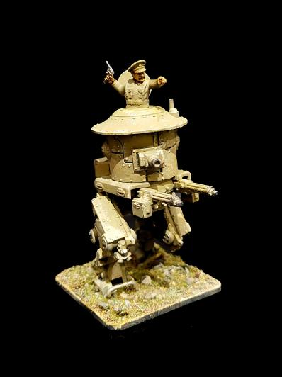 Hammer Jaw Spider Mech Credit: West Wind ProductionsGrowing up a massive WW2 plane nerd, I wanted to go down the lighter route, so I got the lightest of the available Soviet Mecha to turn my Bolt Action platoon into something that might work for Konflikt '47. The Cossack Light Walker (looks to me inspired by a Yak-15) is a very very light walker with low armour but surprising speed and agility, something that my otherwise footslogger-heavy Soviet list lacks. Armed with a light autocannon and medium machine gun, it can throw a surprising amount of lead downfield and take out other light vehicles while doing so. The combination of Agile (an additional 90 degree pivot when moving) and Recce (can bugger off in reaction when targeted) means that it's able to zip out of cover or out of line of sight, get a few shots off and (if your activation order is right) sod off to escape retribution.