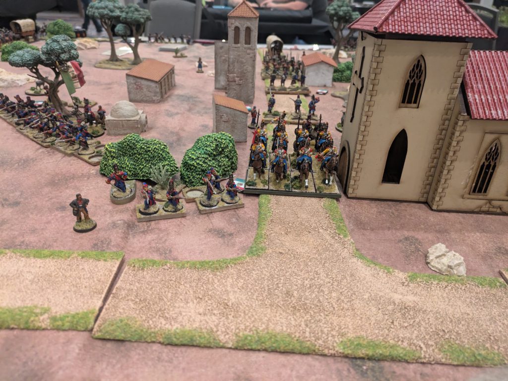 Cavalry charge! Credit: Michael O "mugginns"Both games showed some really good use of Sharp Practice as well as other maneuvers, like using four command cards to double activate. The Mexican forces did manage to get the Americans close to losing a command card the first game but in the end they had to retreat. In the second game the Mexican forces did better, moving up and laying fire into the advancing Americans, but were not able to hold on when the Americans pushed forward.