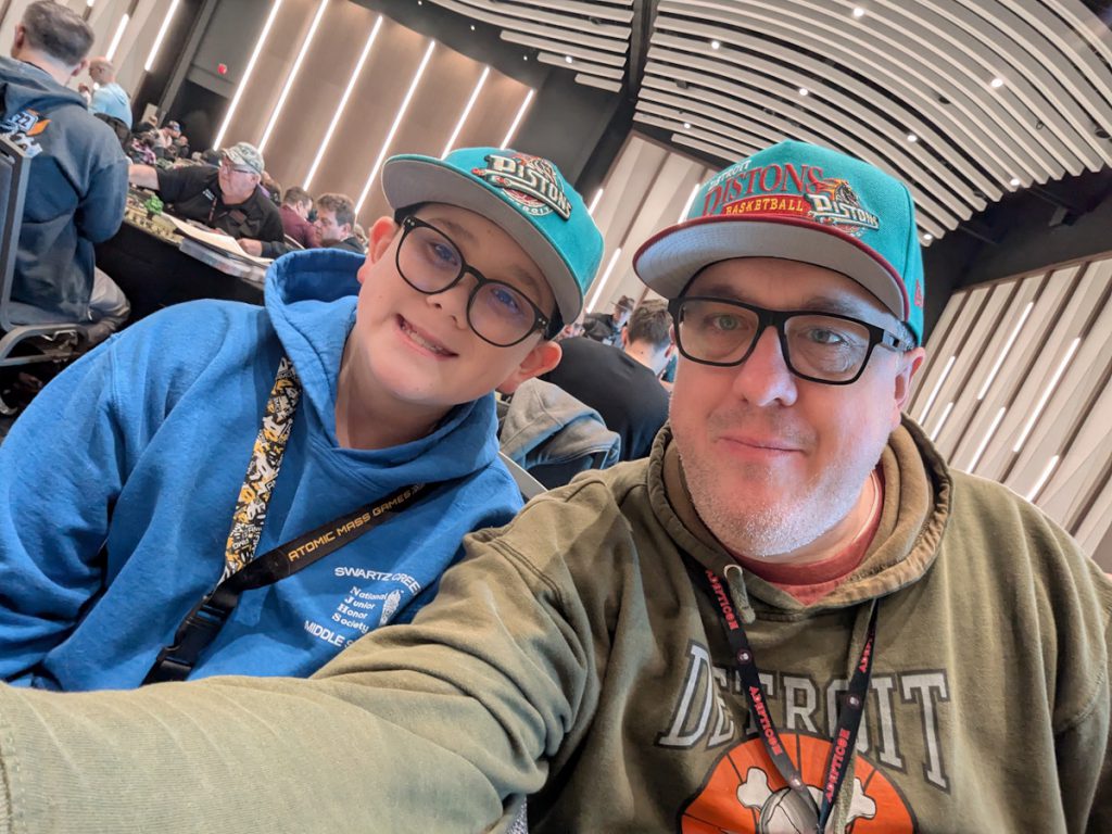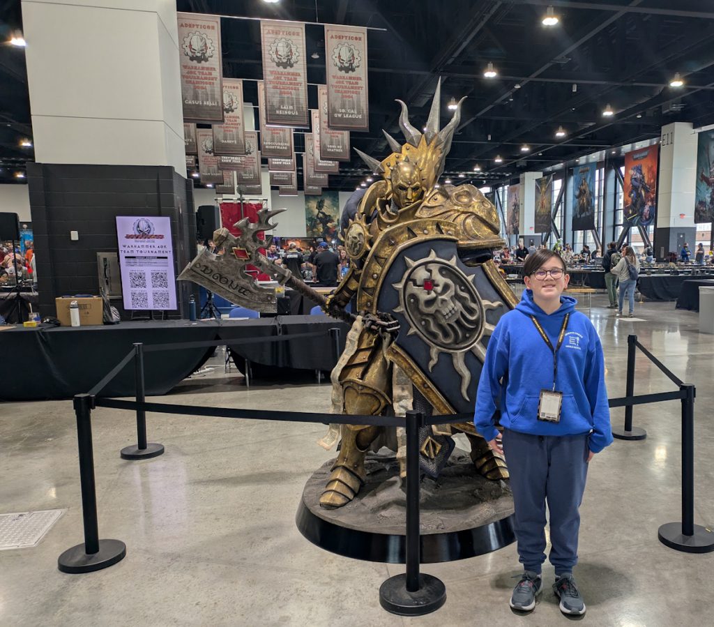 Charlie stands with the Stormcast in the Vendor Hall. Credit: Michael O "mugginns"Things are a little different for me now. We used to go with four or five guys, all play in some of the same events, and room together. Now it's just me and my 13 year old son. This was the second year he's gone with me and it's been a great time. I likely have a little different experience than most recaps you'll read on websites - I run events and participation games, while also doing some tournament games as well.