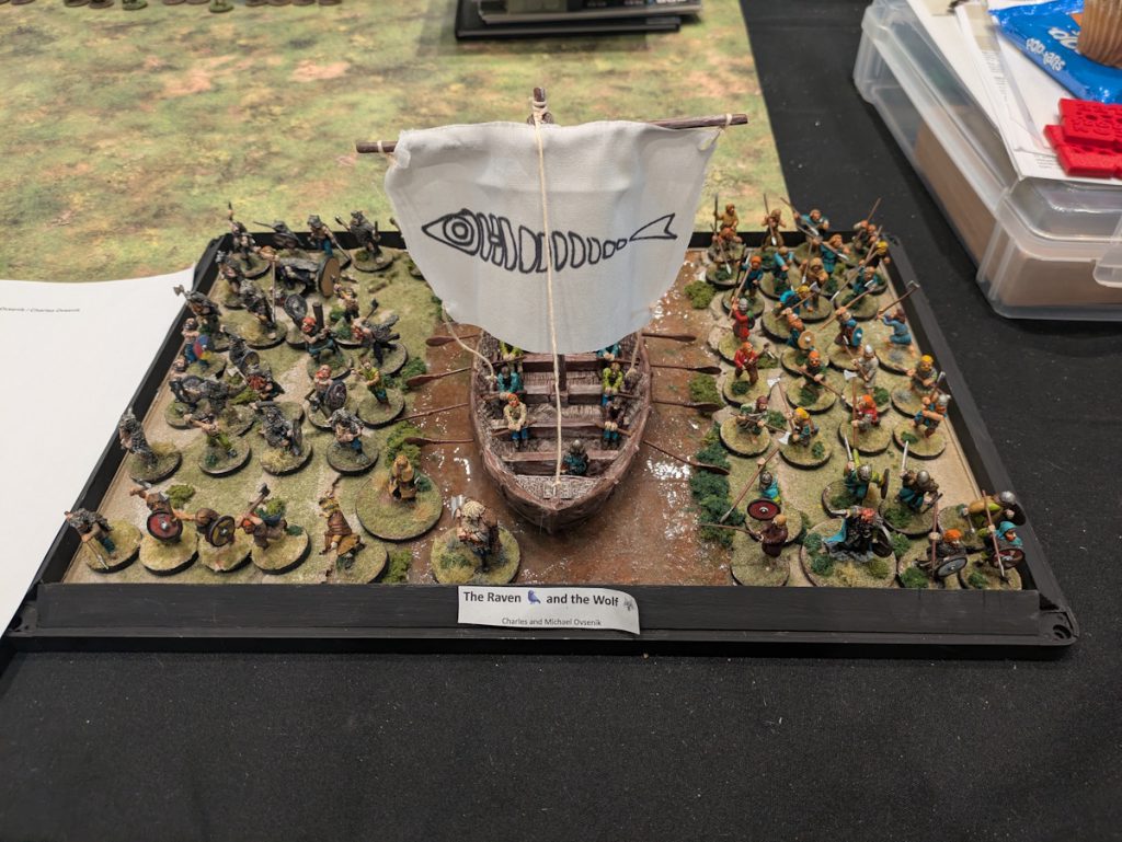 Charlie and I played in the SAGA Clash of Ages: Historical Doubles Grand Melee. Every player brought four points of their chosen faction, with teams not doubling up on a faction. Charlie and I brought Norse-Gaels and Vikings. Our lists were like this:Vikings