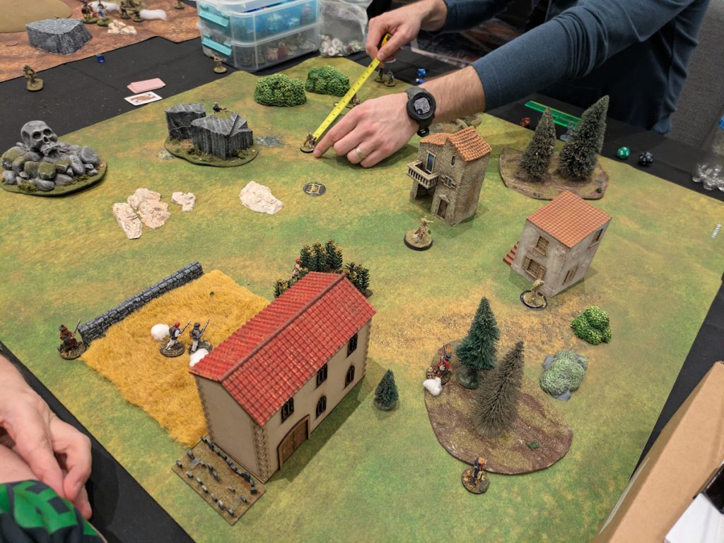 All of our Silver Bayonet tables. Credit: Michael O "mugginns"Charlie and I ran a 20-person event for The Silver Bayonet, the Napoleonic warband-sized game of gothic horror. Each player brings their Silver Bayonet unit of up to eight guys and plays three games. Between each game some of the player's soldiers will advance using the experience system built into the campaign part of the game.