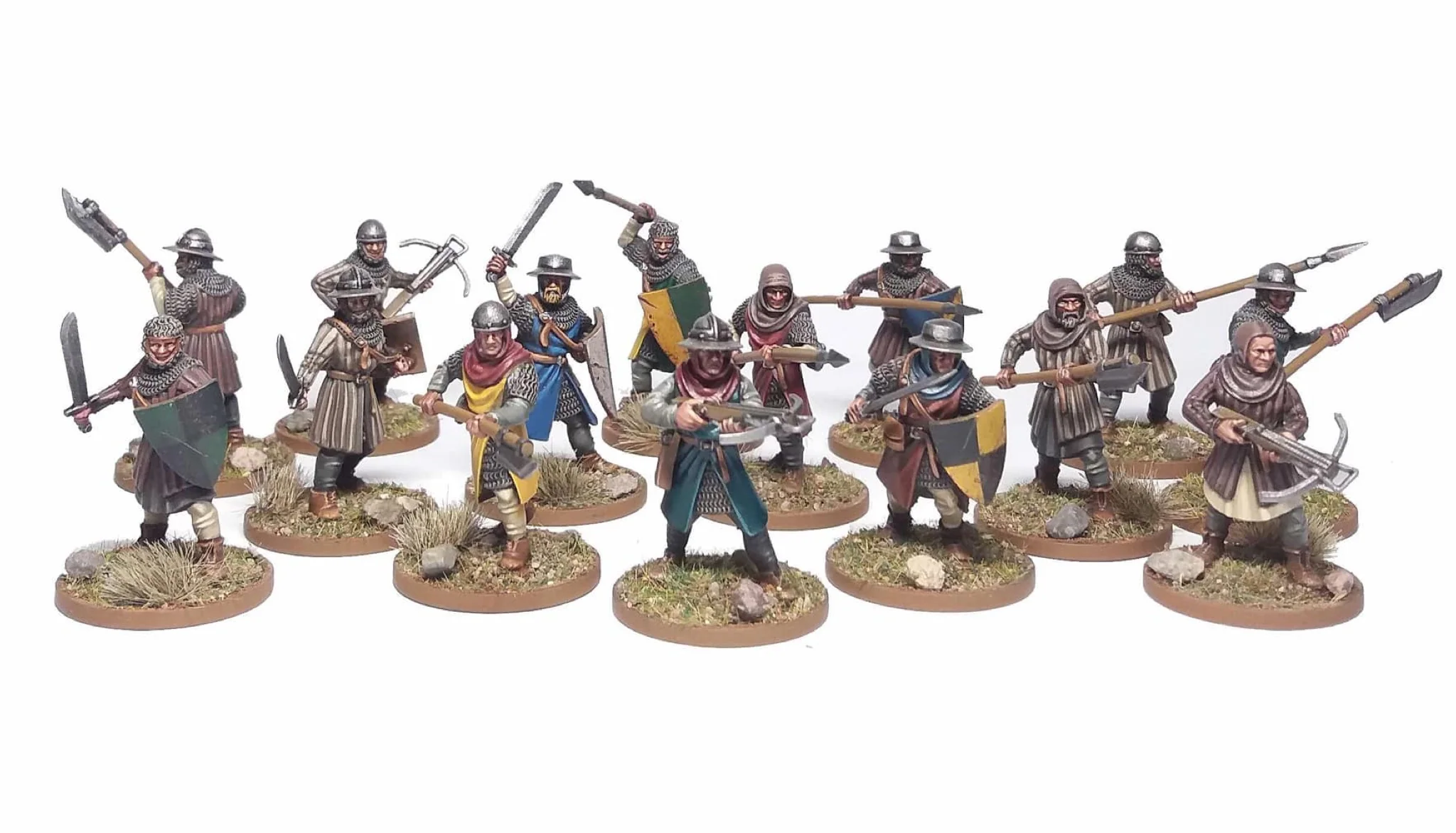 You have 16 torsos to use that can carry the two-handed weapons, so the crossbows, spears and halberds will be shared between them. This isn’t a problem if you can use units with mixed weapons or can use plenty of shield carrying infantry, but if you want 24 crossbowmen or spearmen without shields you’ll either need to buy two boxes or look for a more dedicated kit..